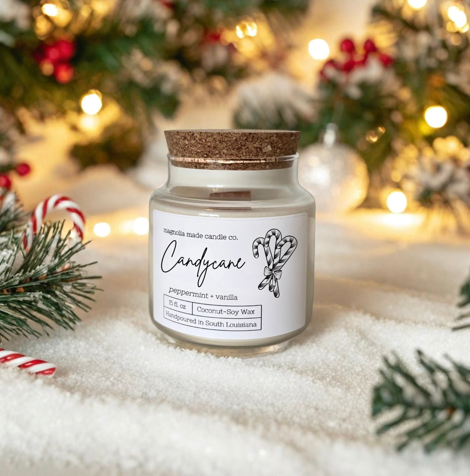 Candy Cane blends notes of cool peppermint and creamy vanilla to create this sweet candy scent.