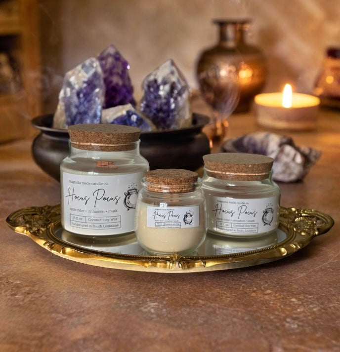 Hocus Pocus blends notes of hot apple cider, spicy cinnamon, sweet vanilla, and warm musk to brew this witchy concoction.